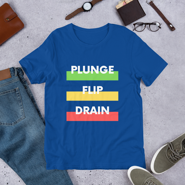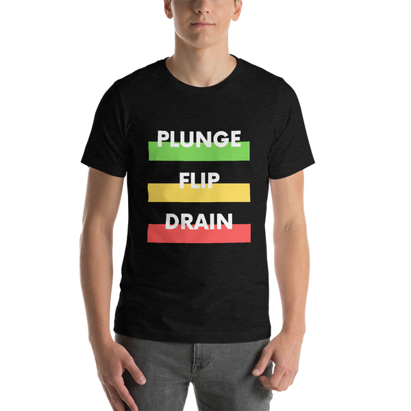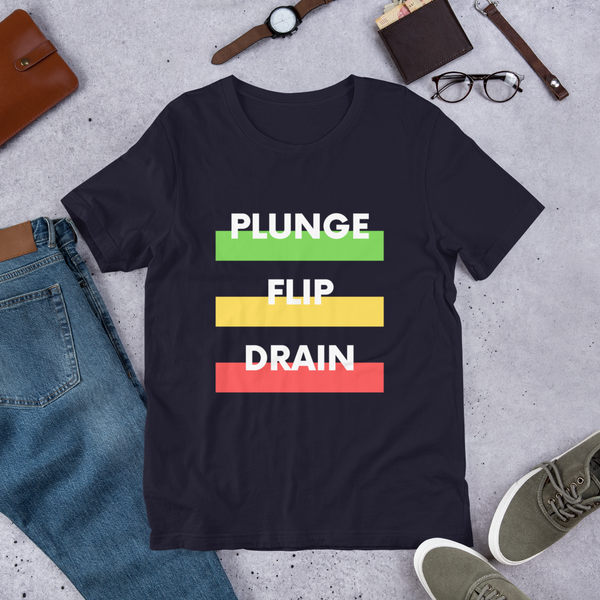 That is pretty much how I want to live my life: plunge, flip, and drain every day. Of course, you will have to explain yourself to everyone when you wear this shirt. It is a perfect conversation starter.